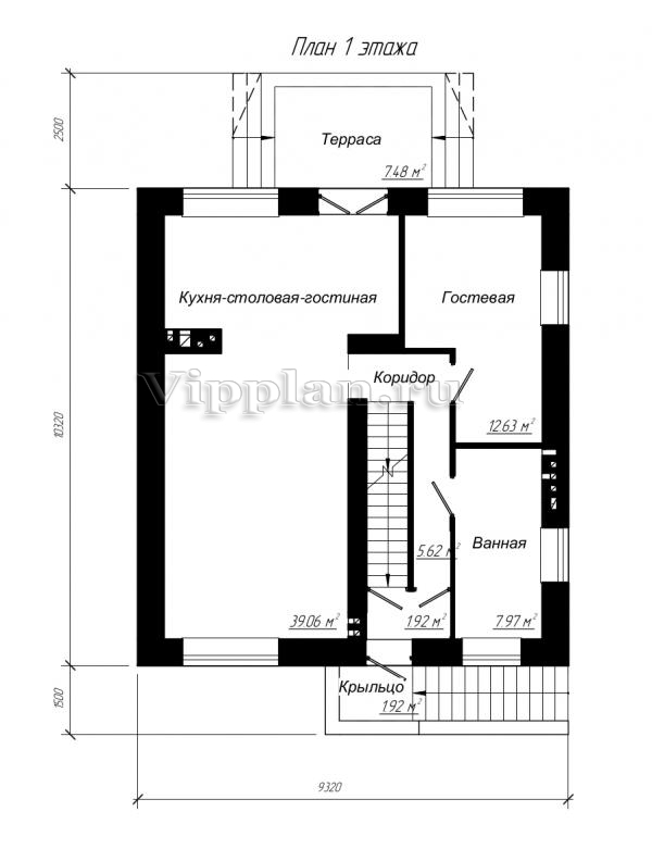 | Размеры дома: | 9.32м×10.32м |