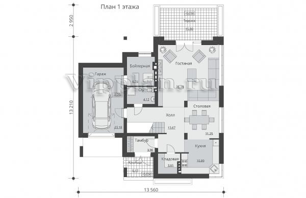 | Размеры дома: | 13.56м×13.21м |