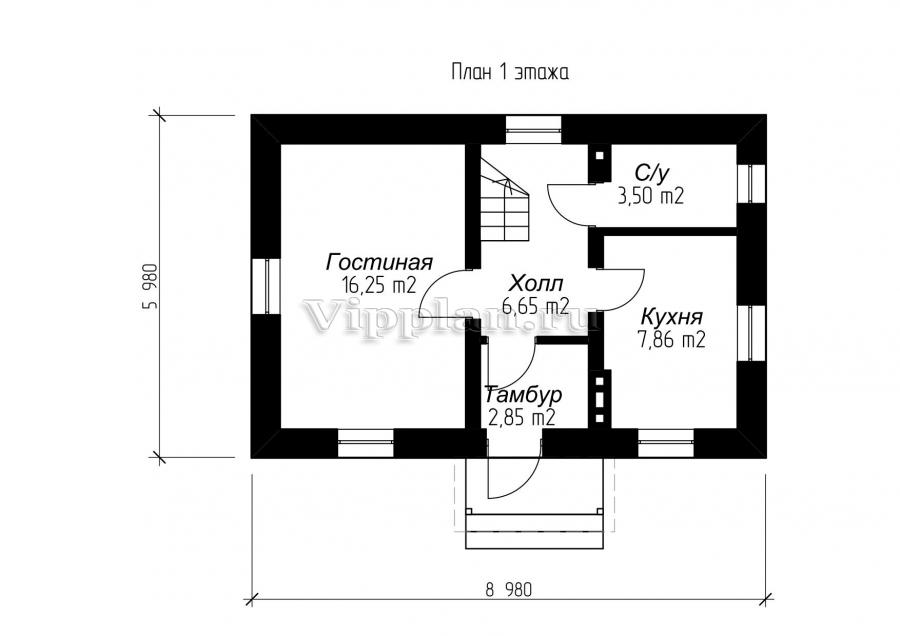 Проект индивидуального одноэтажного жилого дома с размерами 5,98 x 8,98 м.