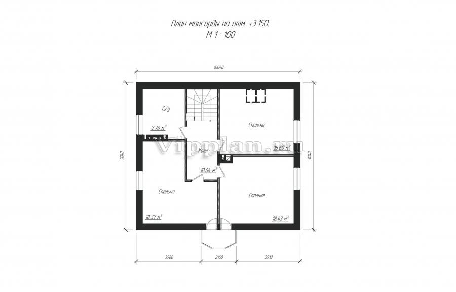 Проект индивидуального одноэтажного жилого дома с размерами 9,04х10,04 м.